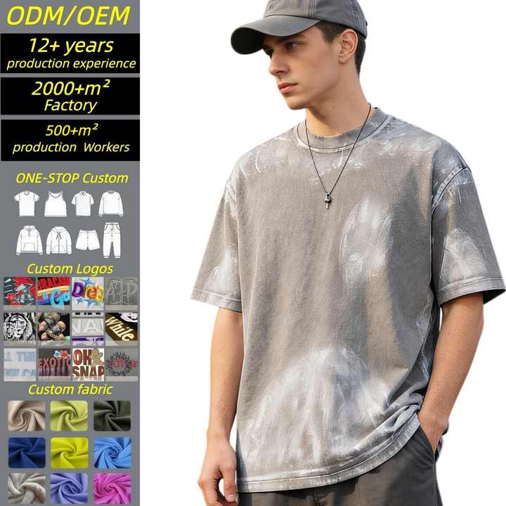 T-shirt décontracté pour homme en coton 100% de qualité supérieure, lavage à l'acide vintage, surdimensionné, TKAN791D, poids lourd 280 g/m², personnalisable en usine