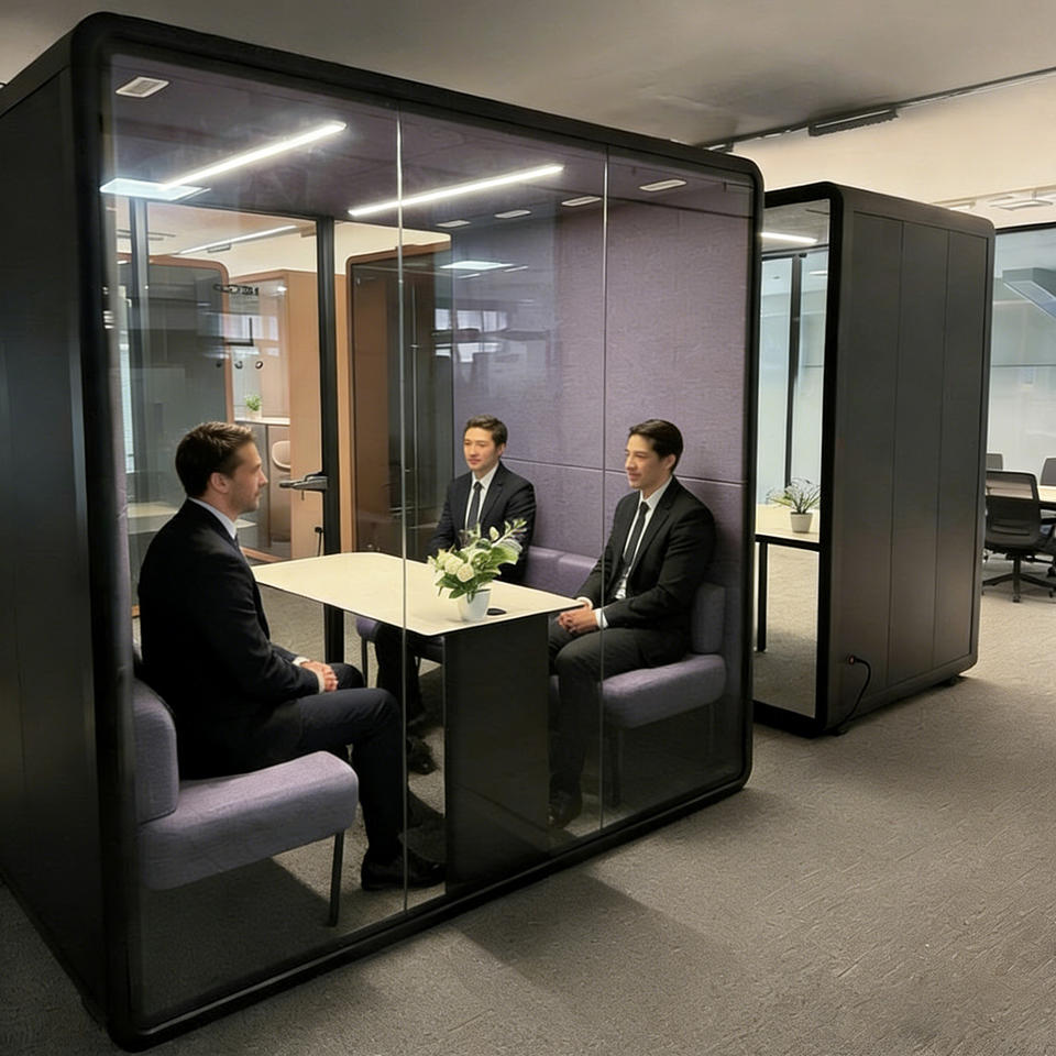 Cabine de réunion modulaire insonorisée portable en alliage d'aluminium moderne, personnalisée en usine, 35 dB