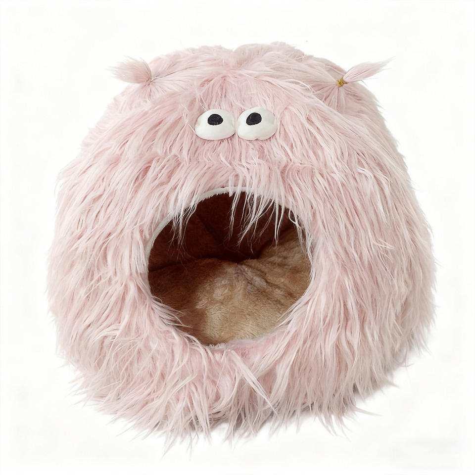Lit pour chat en peluche en forme de monstre personnalisé en usine, nid pour animaux de compagnie semi-fermé, mignon et chaud, antidérapant, pour petits chiens et chats
