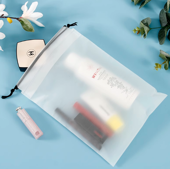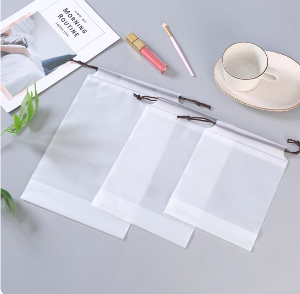 Chaussures de voyage en plastique personnalisées en usine vêtements anti-poussière organisant le stockage sacs à cordon transparents avec double cordon de serrage en coton