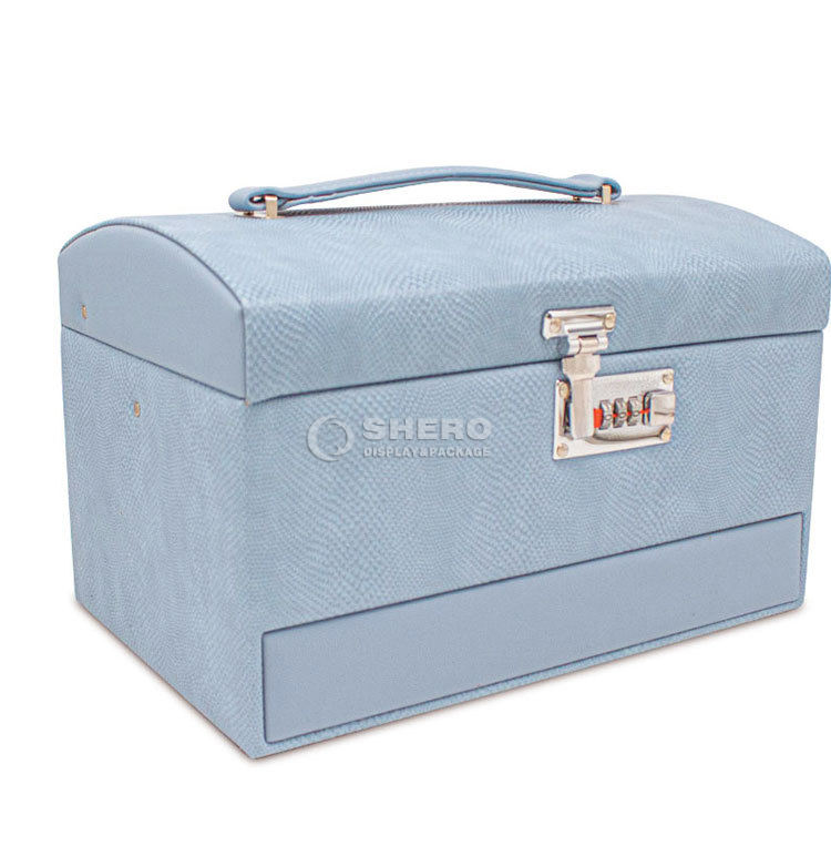Boîte de rangement pour bijoux de voyage en cuir PU portable sur mesure, grande capacité, boîte organisatrice pour boucles d'oreilles et colliers avec serrure à code