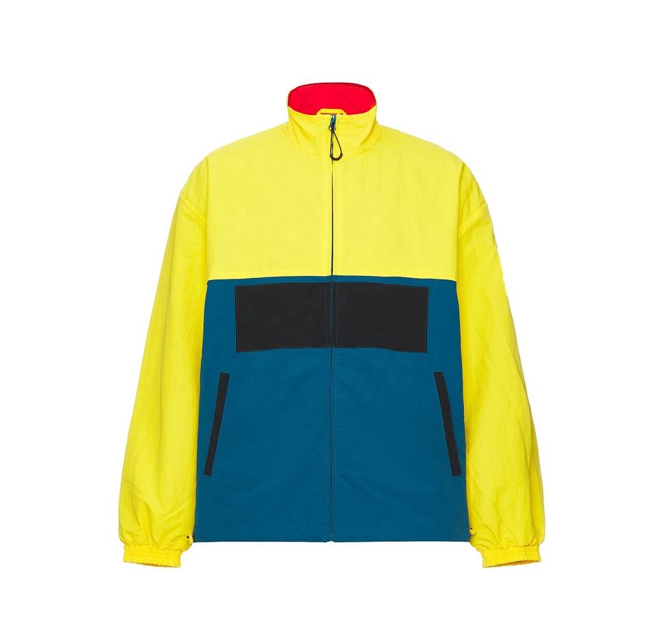 Veste coupe-vent légère en nylon avec appliques imprimées personnalisées en usine, poches avant, coupe décontractée, veste de jogging pour hommes