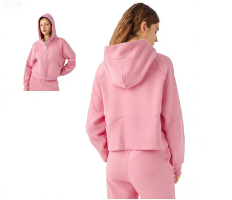 Sweat à capuche oversize pour femme en molleton tricoté Lulu, avec logo imprimé sur mesure, col montant zippé, séchage rapide, respirant et imperméable