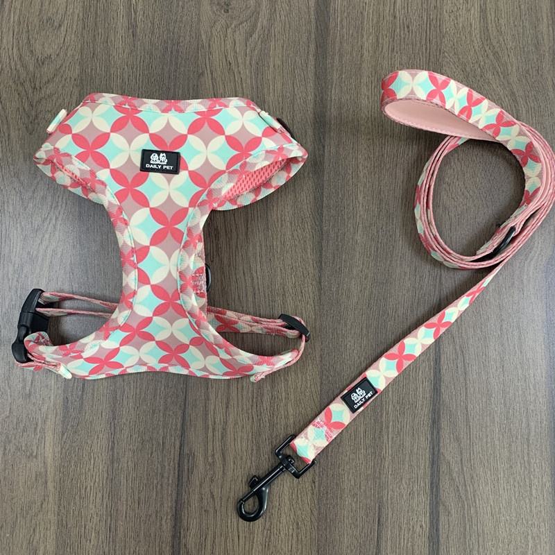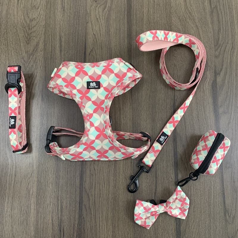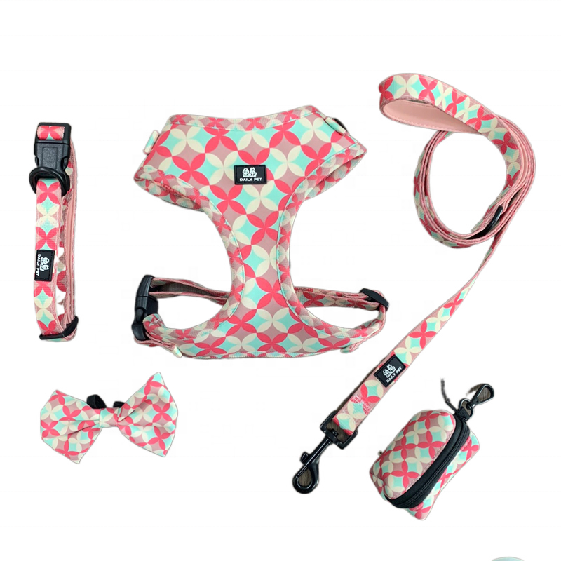 Usine personnalisé imprimé luxe Pet chien harnais ensemble néoprène rembourré réglable collier laisse caca sac noeud papillon fait polyester tissu