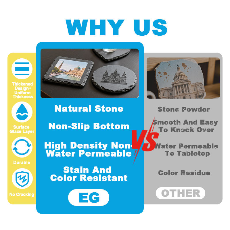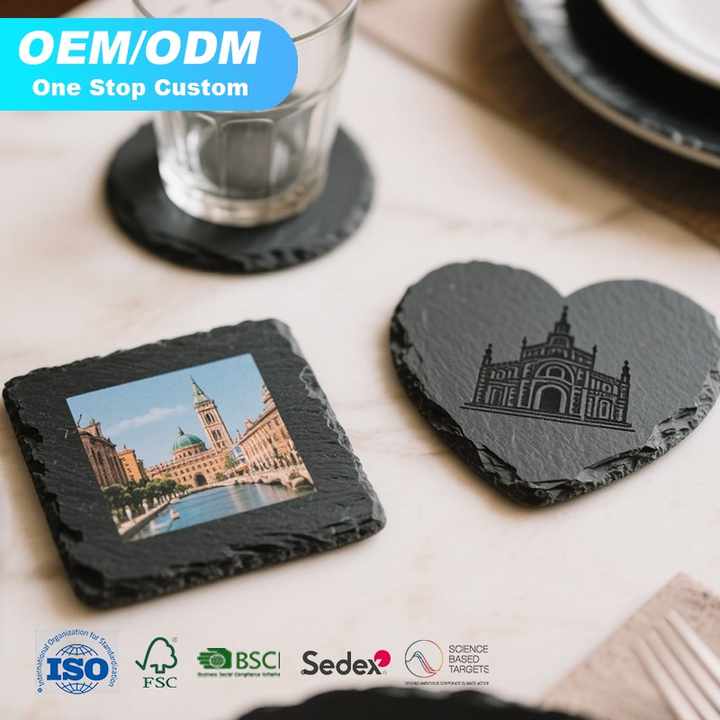 Dessous de verre en pierre d'impression personnalisée d'usine avec logo Bière Café Boissons Ardoise gravable au laser Dessous de verre Souvenirs Fabricant