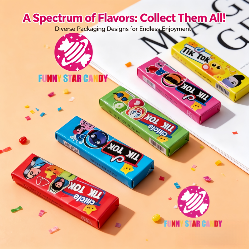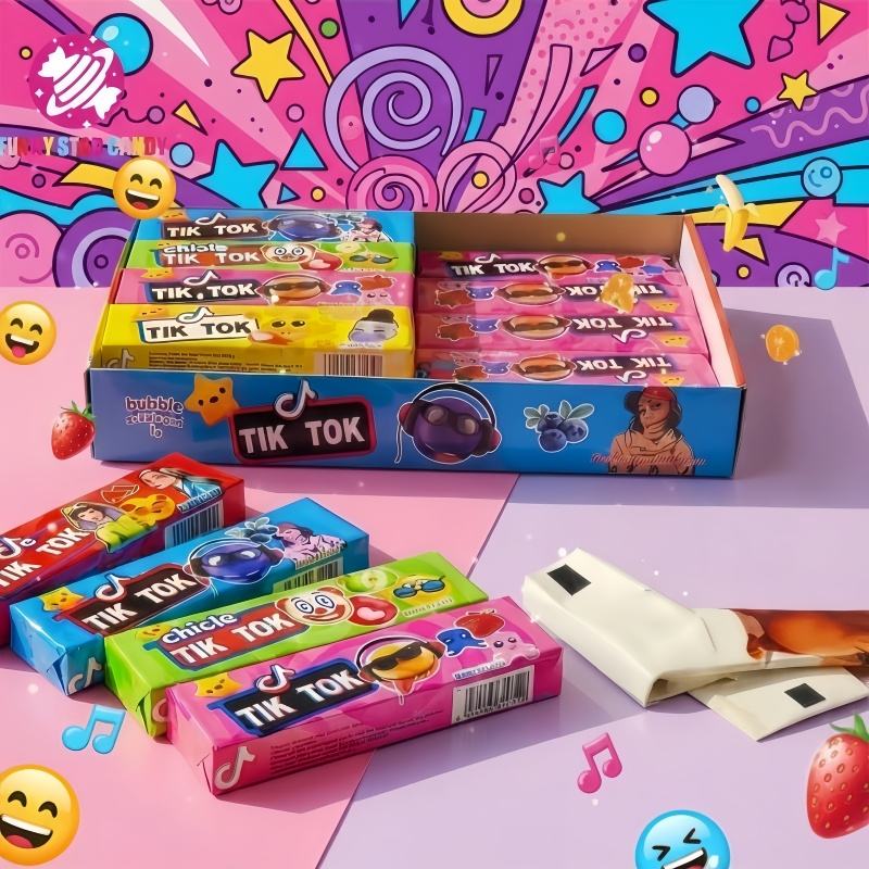 Chewing-Gum Personnalisé en Gros Marque Privée d'Usine, Emballage de 5 Pièces, Goût de Fruit TikTok avec Tatouage Autocollant de Dessin Animé