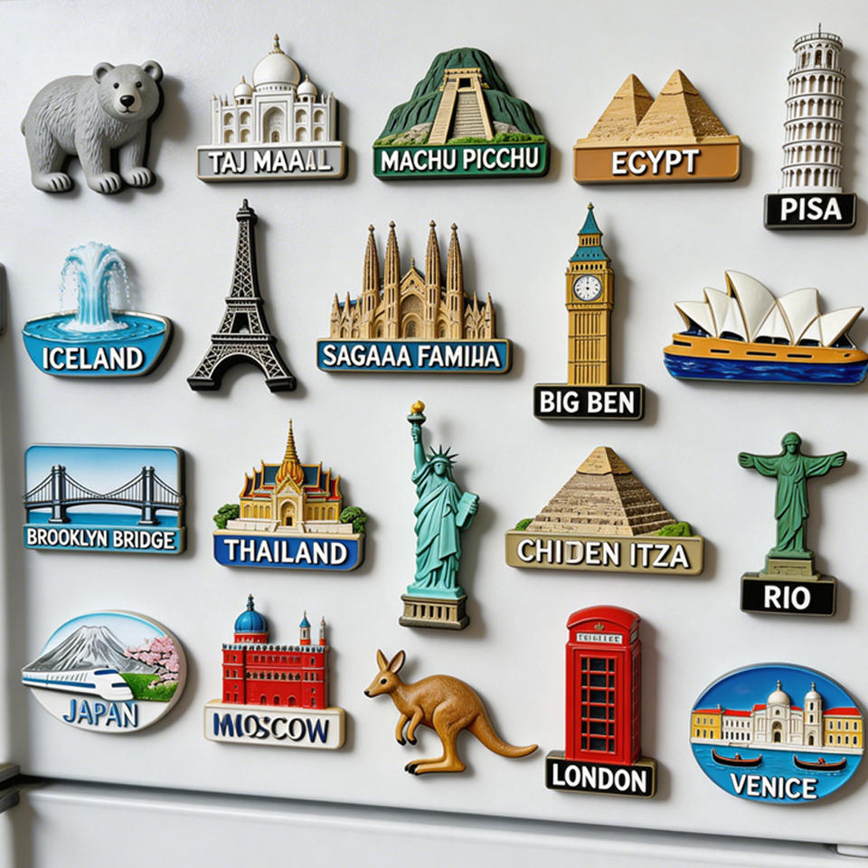 Nom du produit:Aimant de réfrigérateur personnalisé en résine, souvenir de ville 2D 3D