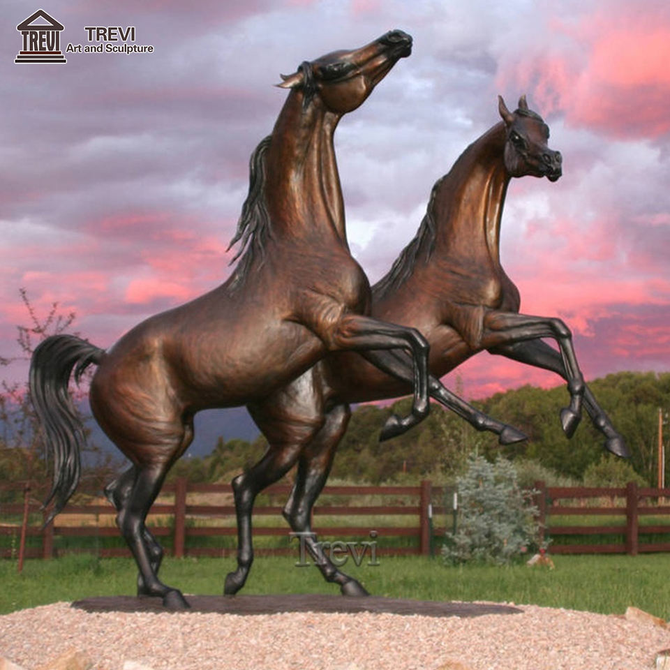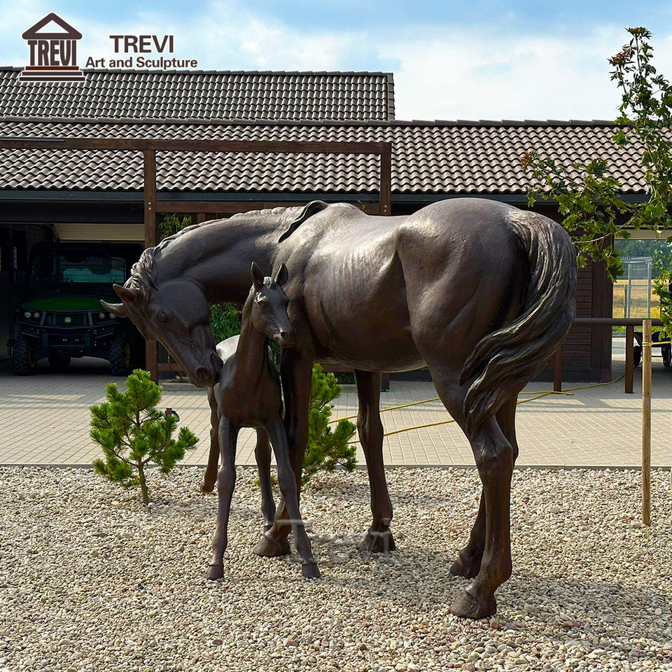 Statue de jardin de taille réelle personnalisée en usine grand cheval et poulain en Bronze