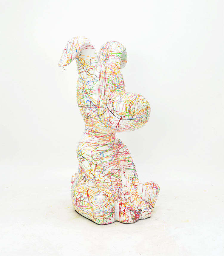 Usine personnalisée résine Art et artisanat peinture à la main Sculpture en fibre de verre mignon abstrait Animal chien Statue ornement pour la décoration intérieure