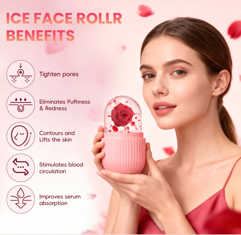 Rouleau de jade facial en silicone réutilisable personnalisé en usine, support de glace pour soins de la peau et moule pour le visage et les yeux, pour l'élimination des rides et la réduction des poches