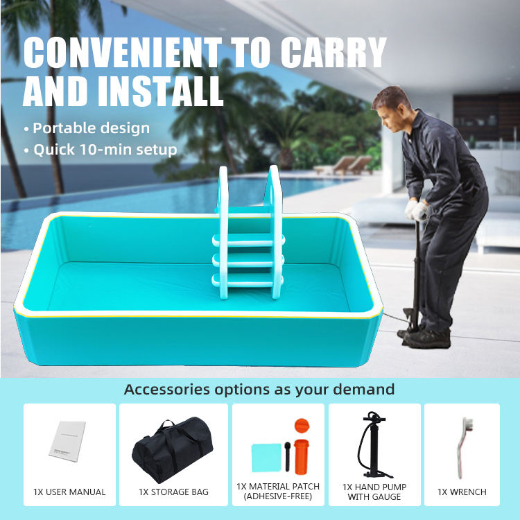 Piscine gonflable rectangulaire sur mesure de 6 m avec escalier de sécurité intégré
