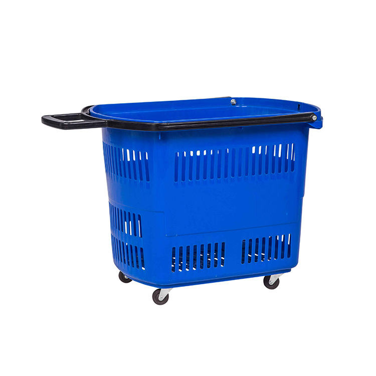 Usine taille personnalisée couleur plastique 40 45 50 L roues de panier de supermarché panier de qualité