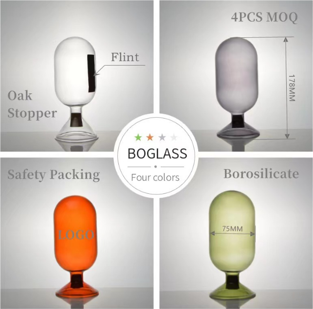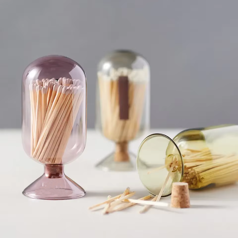 Usine taille personnalisée couleur forme soufflé borosilicate nervuré clair Match Cloche verre Match Cloche