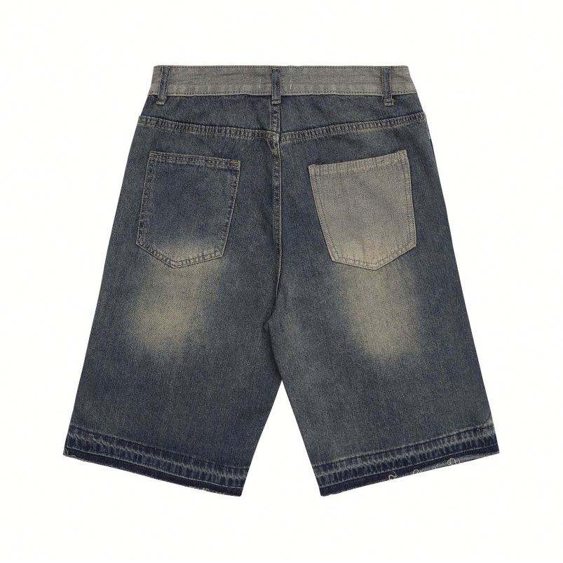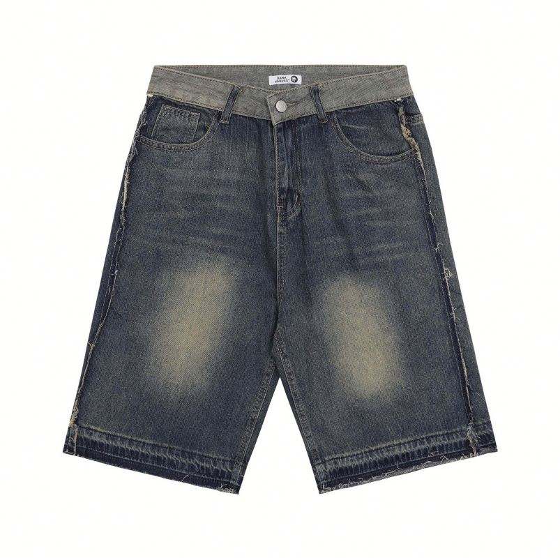 Shorts en jean décontractés à la mode, fabriqués sur mesure, effet délavé, couleur contrastée, ourlet retroussé, respirant, coupe ample, jean droit, été