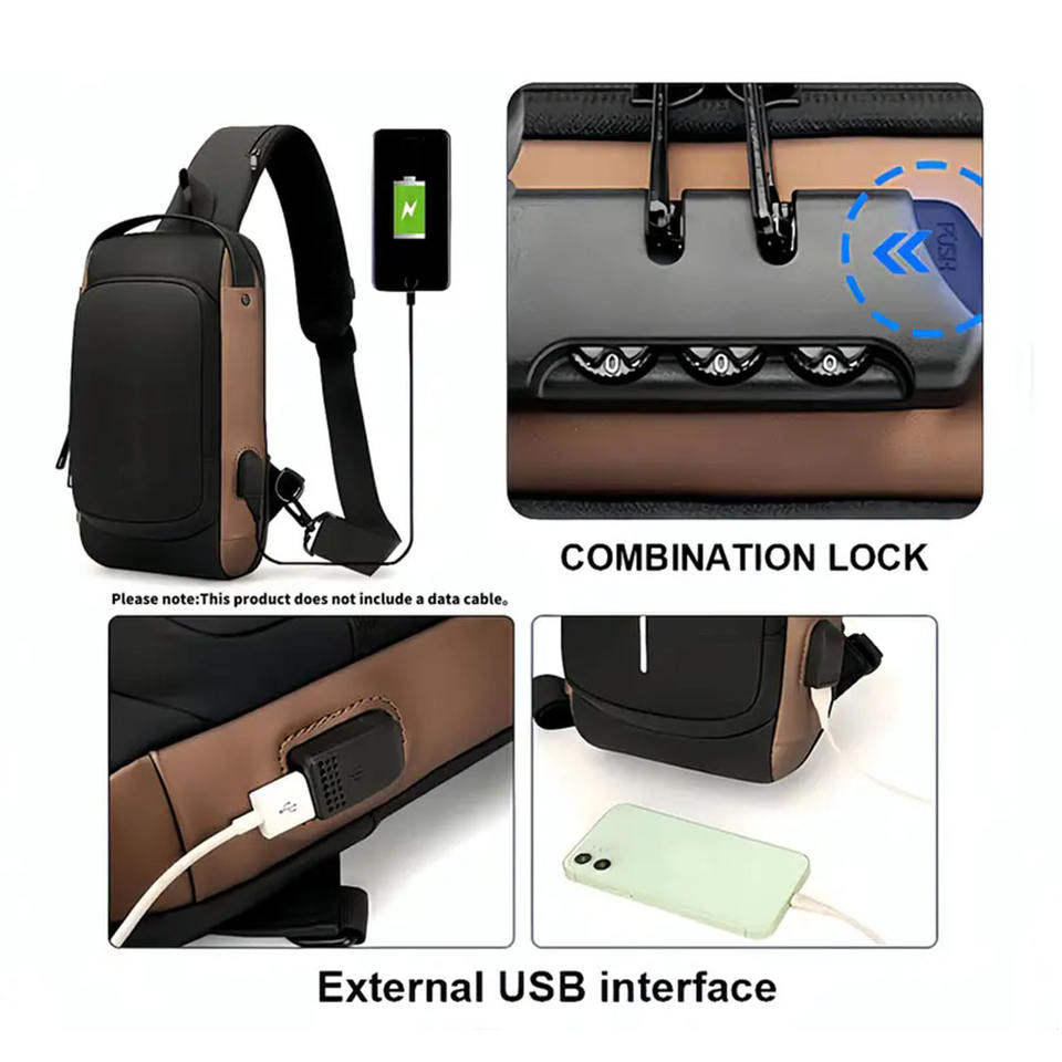 Usine personnalisé unisexe étanche bandoulière sac de messager antivol USB codé serrure fermeture éclair une fronde mode pour le voyage