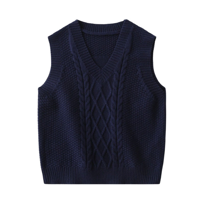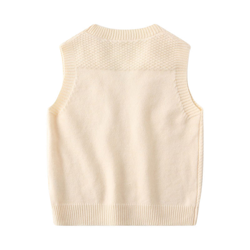 Gilet en tricot pour bébé sans manches à col en V personnalisé d'usine Gilet en tricot jacquard de couleur unie de haute qualité pour garçon