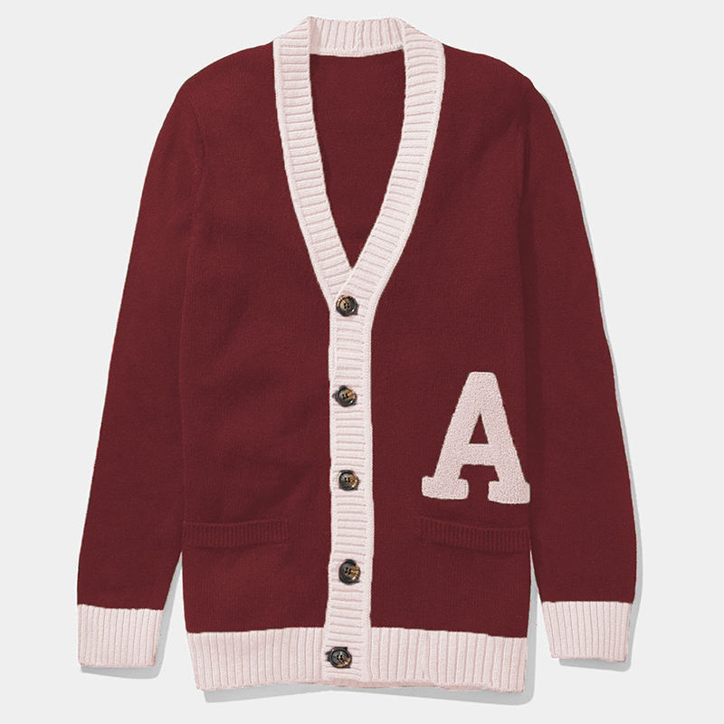 Pull universitaire personnalisé en usine, logo en chenille, poche, tricot en laine, pull en acrylique, boutonné, pull de sport, cardigan