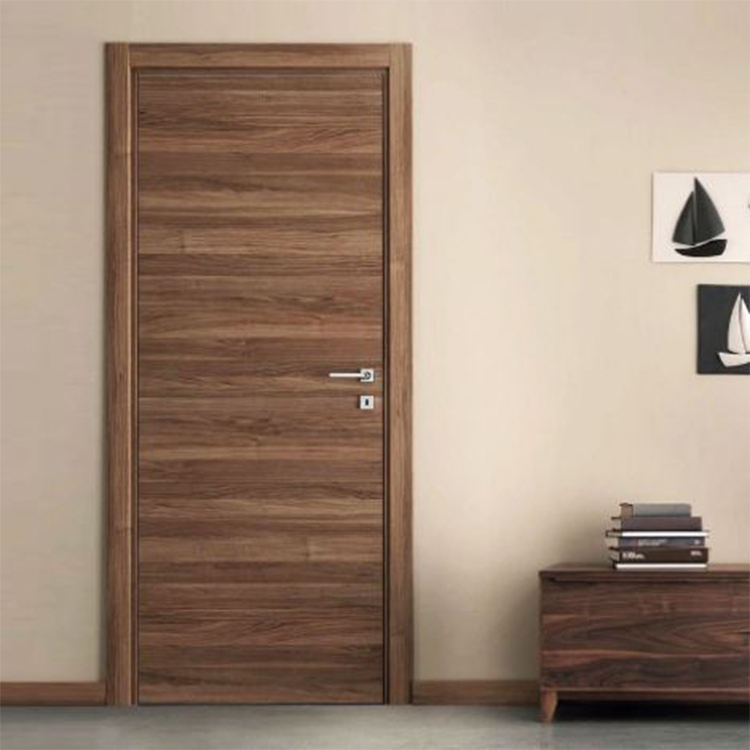 Portes d'intérieur en noyer personnalisées en usine Portes en bois préfini en placage de noyer avec cadres Porte prémontée intérieure moderne
