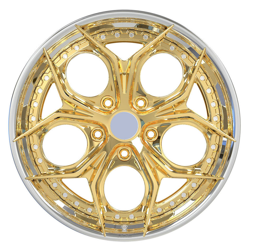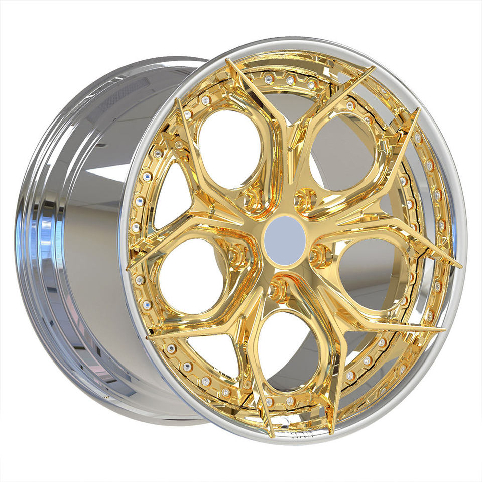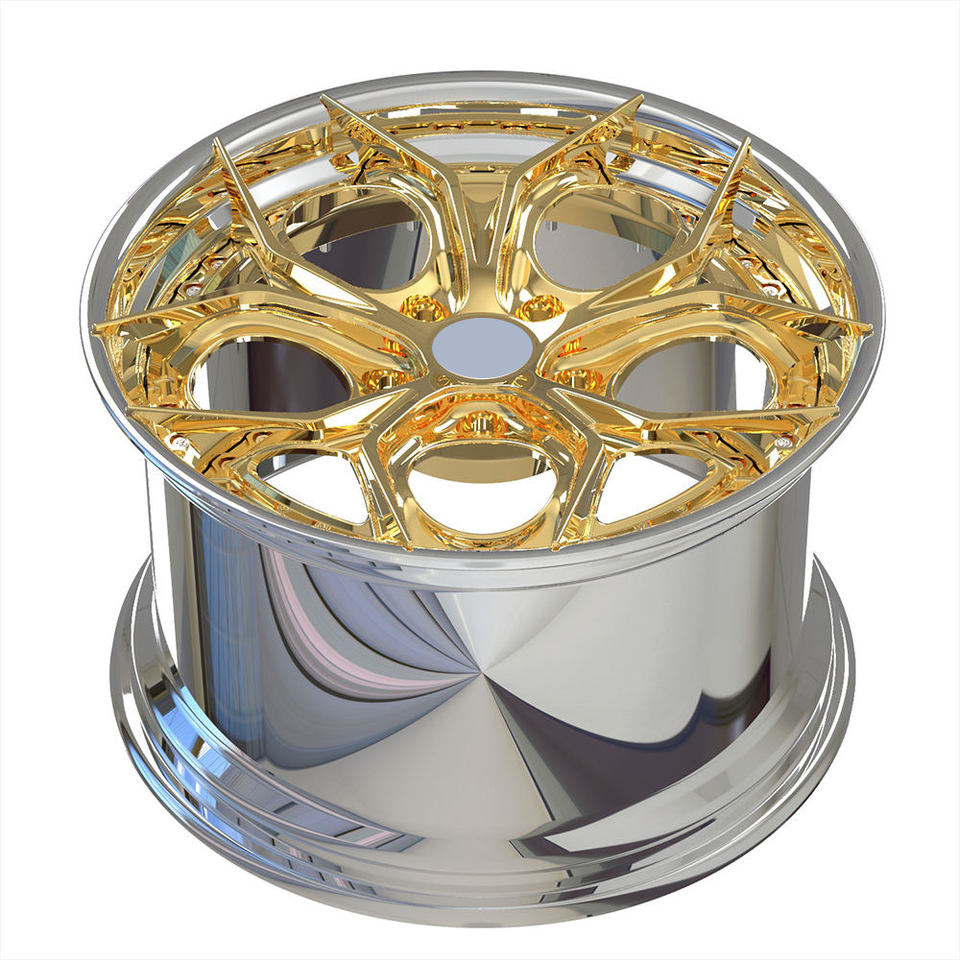 Jantes forgées sur mesure en chrome blanc avec centre chromé or, 2 pièces, 20 pouces, 5 trous pour Porsche 911