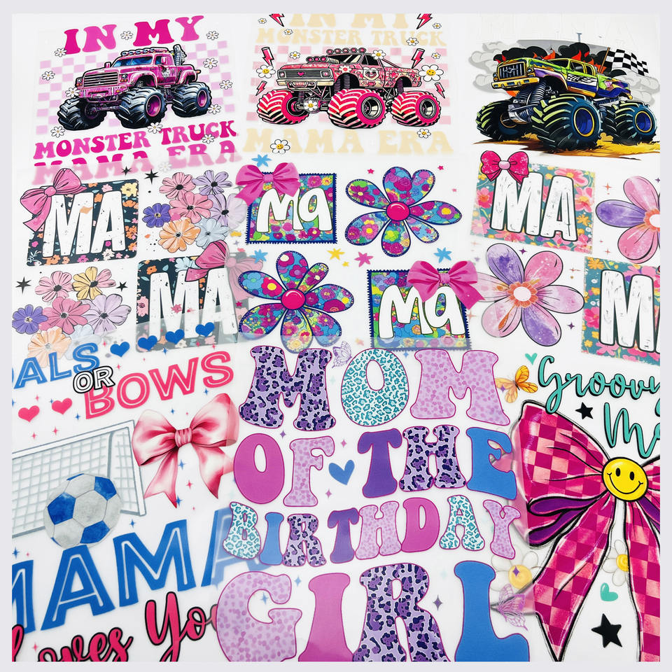 Autocollants DTF personnalisés en gros de haute qualité MOM Plastisol pour transfert thermique, prêts à être pressés sur les vêtements