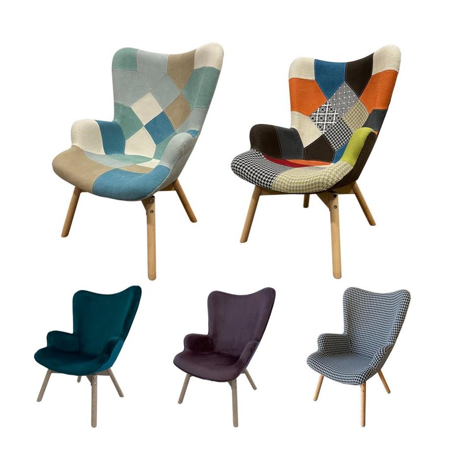 Usine personnalisé bois Patchwork fauteuil Contour chaise tissu Offre Spéciale salon maison meubles de salon confortable canapé chaise