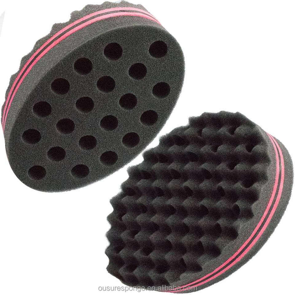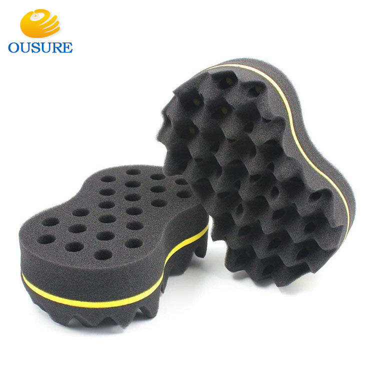 Impression de logo personnalisé d'usine éponge à boucles torsadées en cheveux ondulés des deux côtés haute densité pour hommes noirs