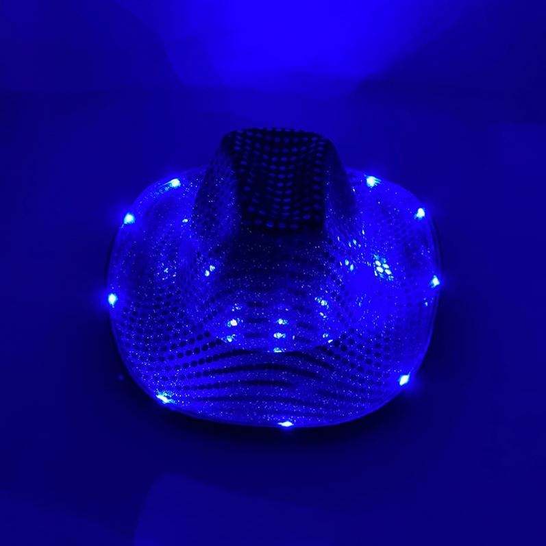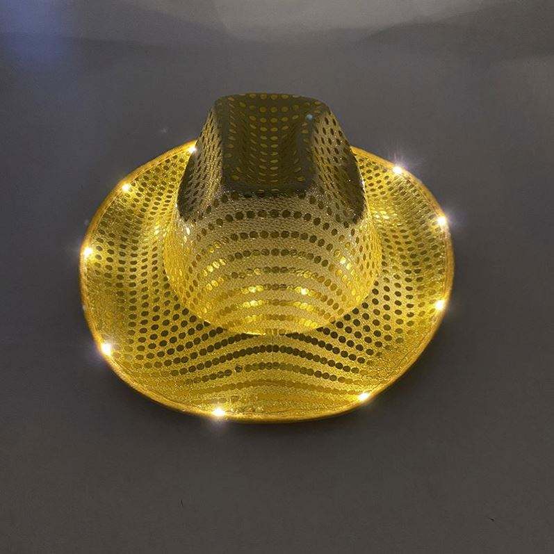Chapeau de cowboy à paillettes LED clignotantes personnalisé en gros pour Halloween, idéal pour les fêtes et les spectacles