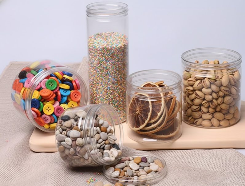 Pot en PET transparent personnalisable en usine, tailles de 30 ml à 1000 ml, pour aliments et maquillage, avec bouchon en plastique, forme cylindrique, idéal pour les biscuits