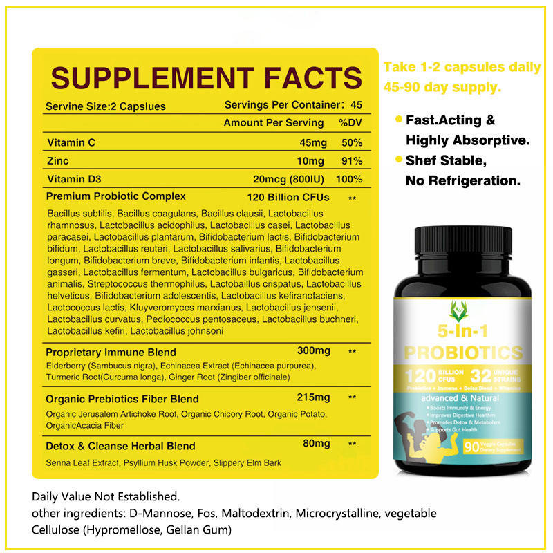 Ingrédient principal:Vitamine C, Zinc, Vitamine D3, Complexe probiotique, Mélange immunisé, Fibre prébiotique, Mélange Detox