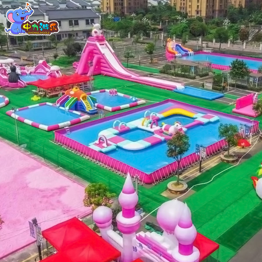 Parc aquatique gonflable sur mesure, château gonflable avec toboggan, parcours d'obstacles électrique extérieur