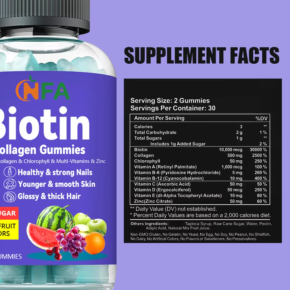 Main Ingredient:Biotin, Collagen, Chlorophyll, Vitamin A, Vitamin B-6, Vitamin B-12, Vitamin C, Vitamin D, Vitamin E, Zinc