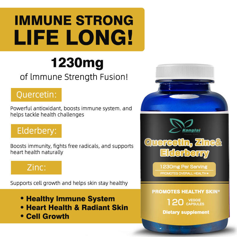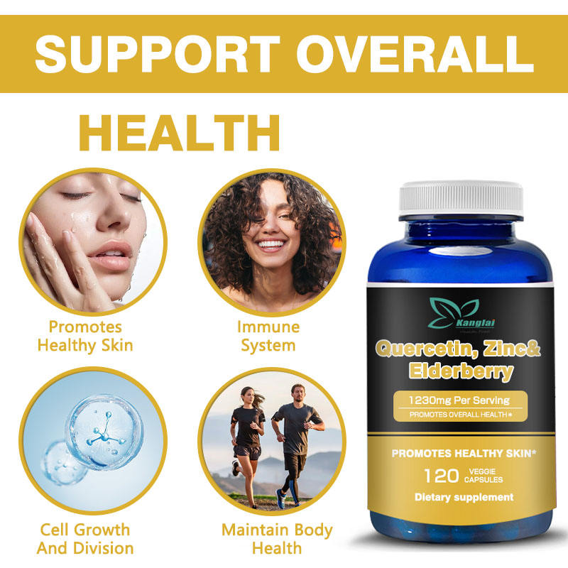 Factory Customization Quercetin Supplement Zinc Elderberry Capsules 1230 mg Non GNO Promotes Healthy Skin Daily Supplement