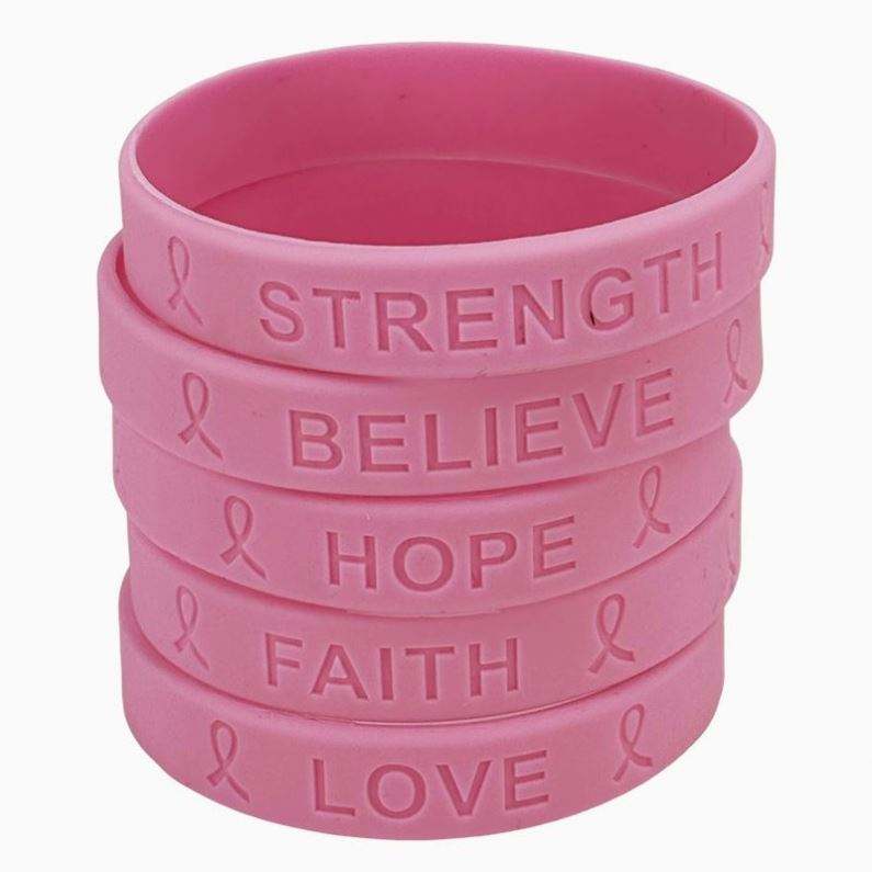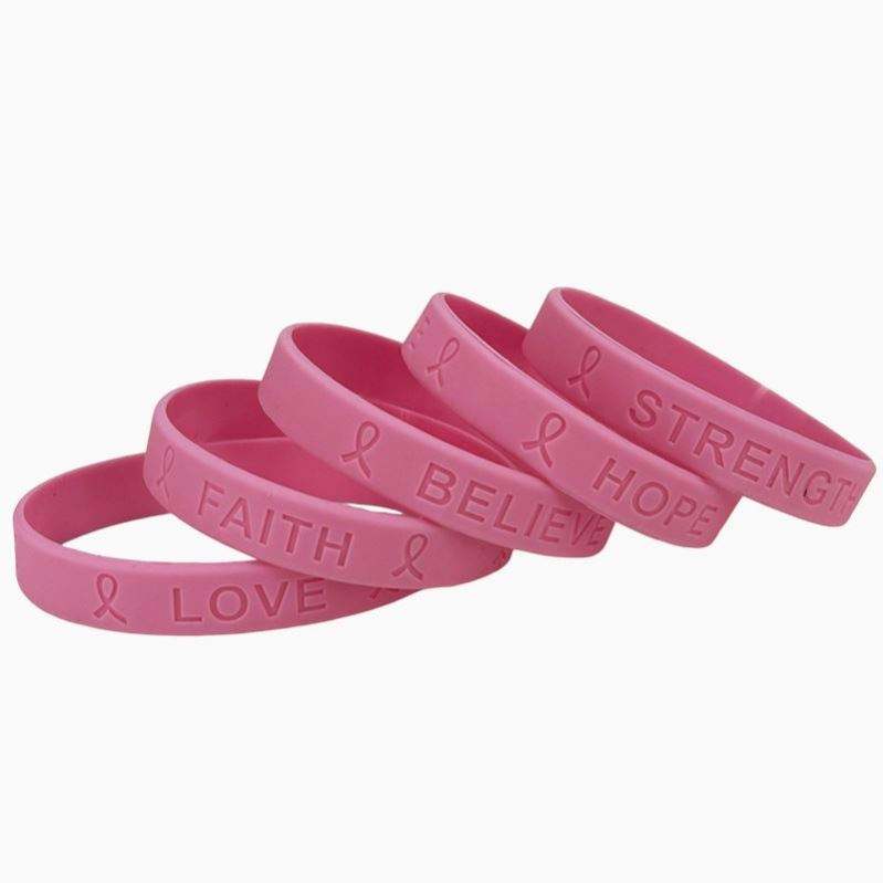 Bracelets en silicone personnalisés pour la sensibilisation au cancer du sein, avec logo personnalisé, bracelets promotionnels en caoutchouc avec informations