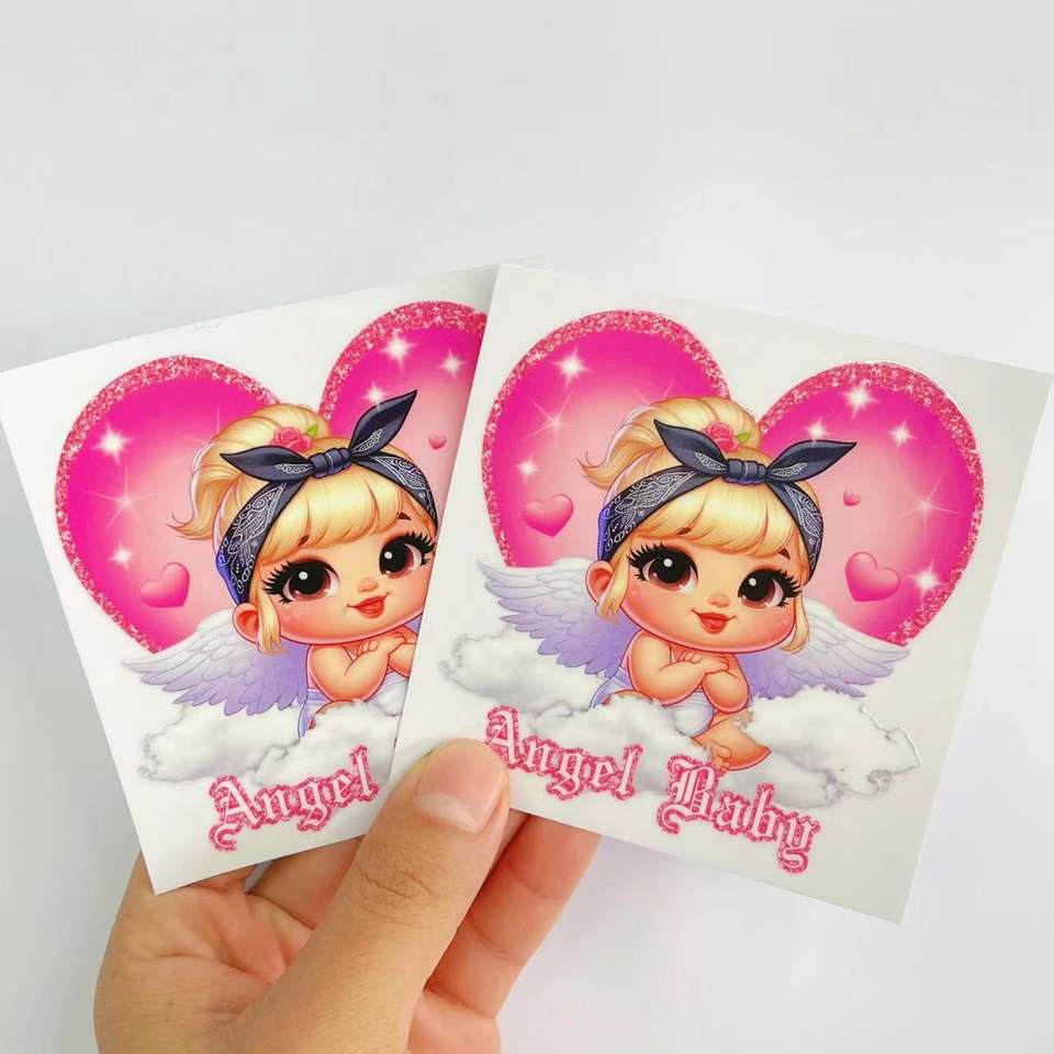Usine personnaliser petit bébé rose coeur conception imperméable décalcomanies uv dtf autocollant wraps transferts uv dtf wraps 16oz sur tasses