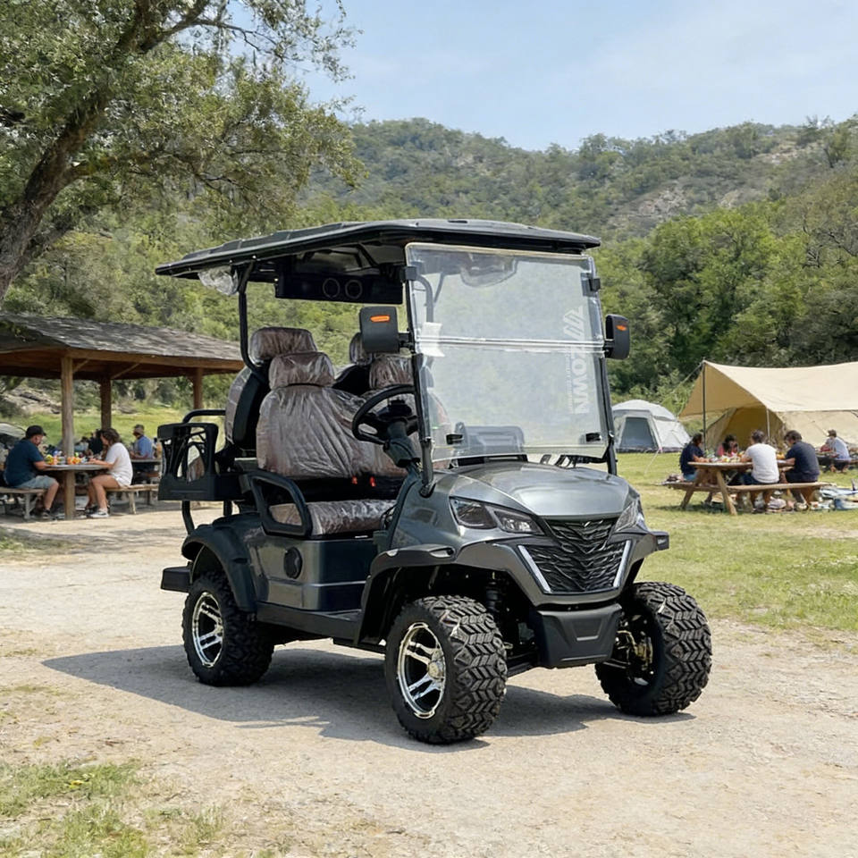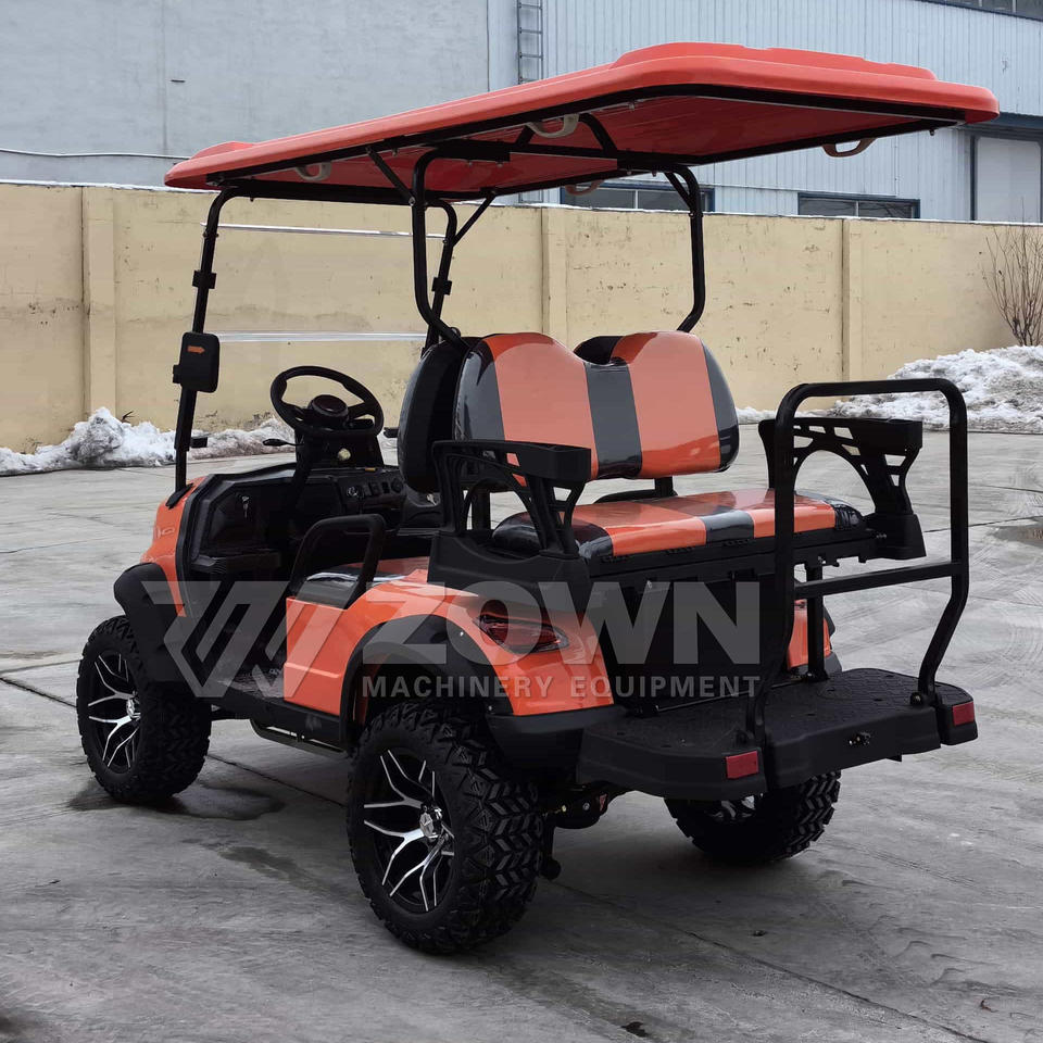 Voiturette de golf électrique haute performance personnalisée en usine, 5-6 places, durable, pour le tourisme routier, avec éclairage LED au toit, certifiée CE