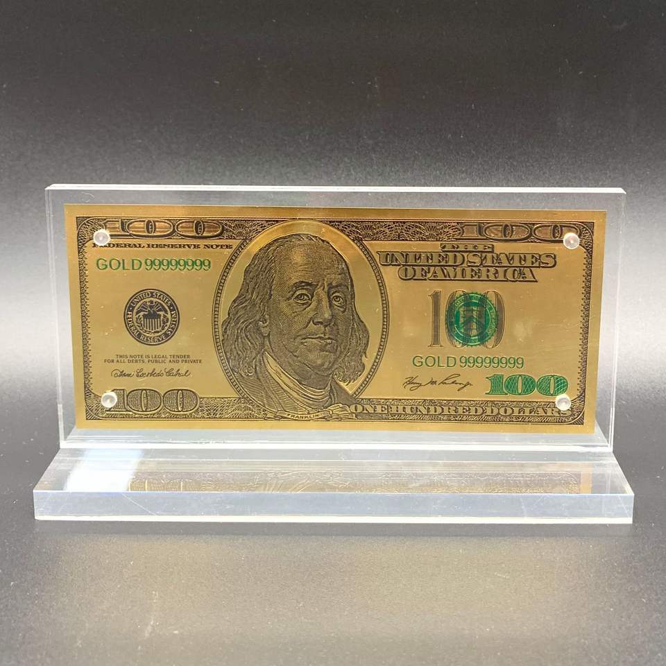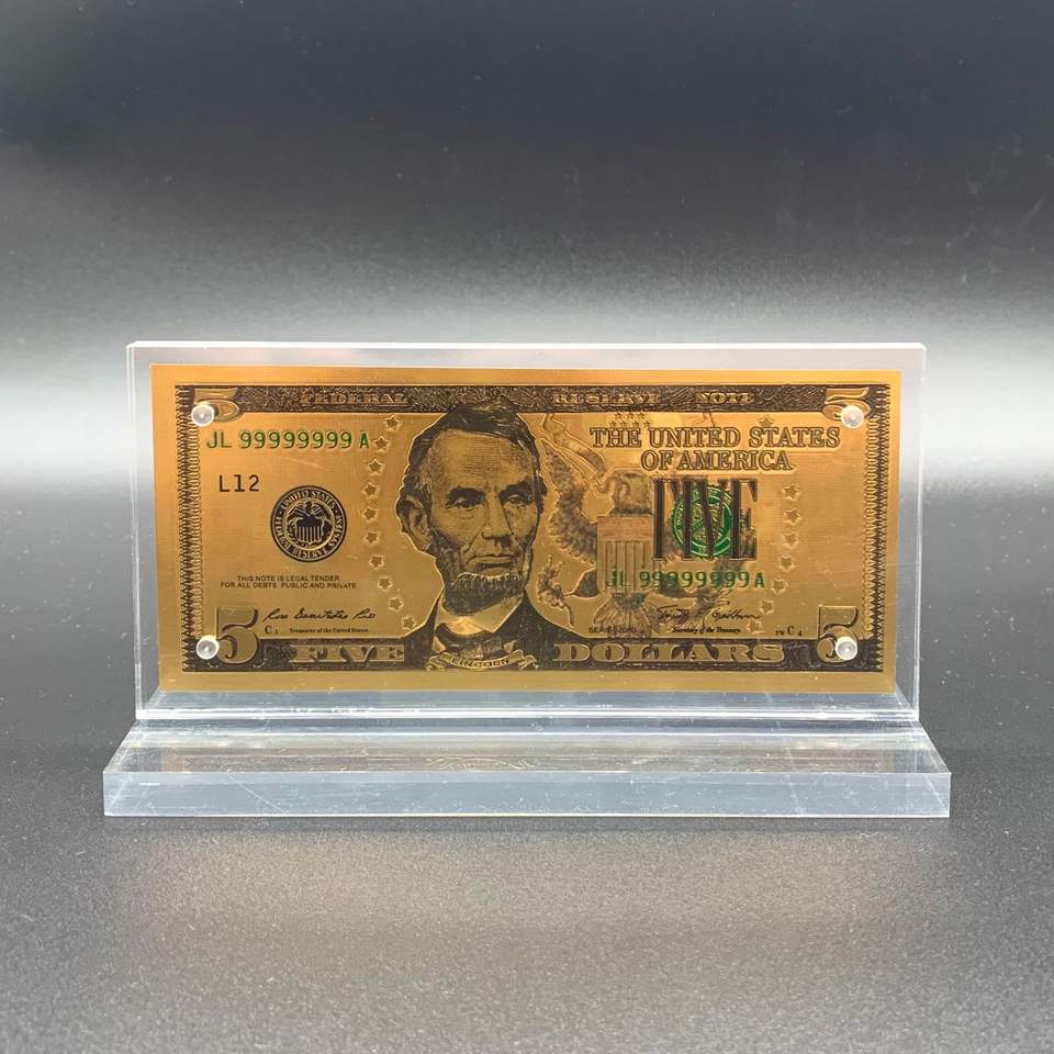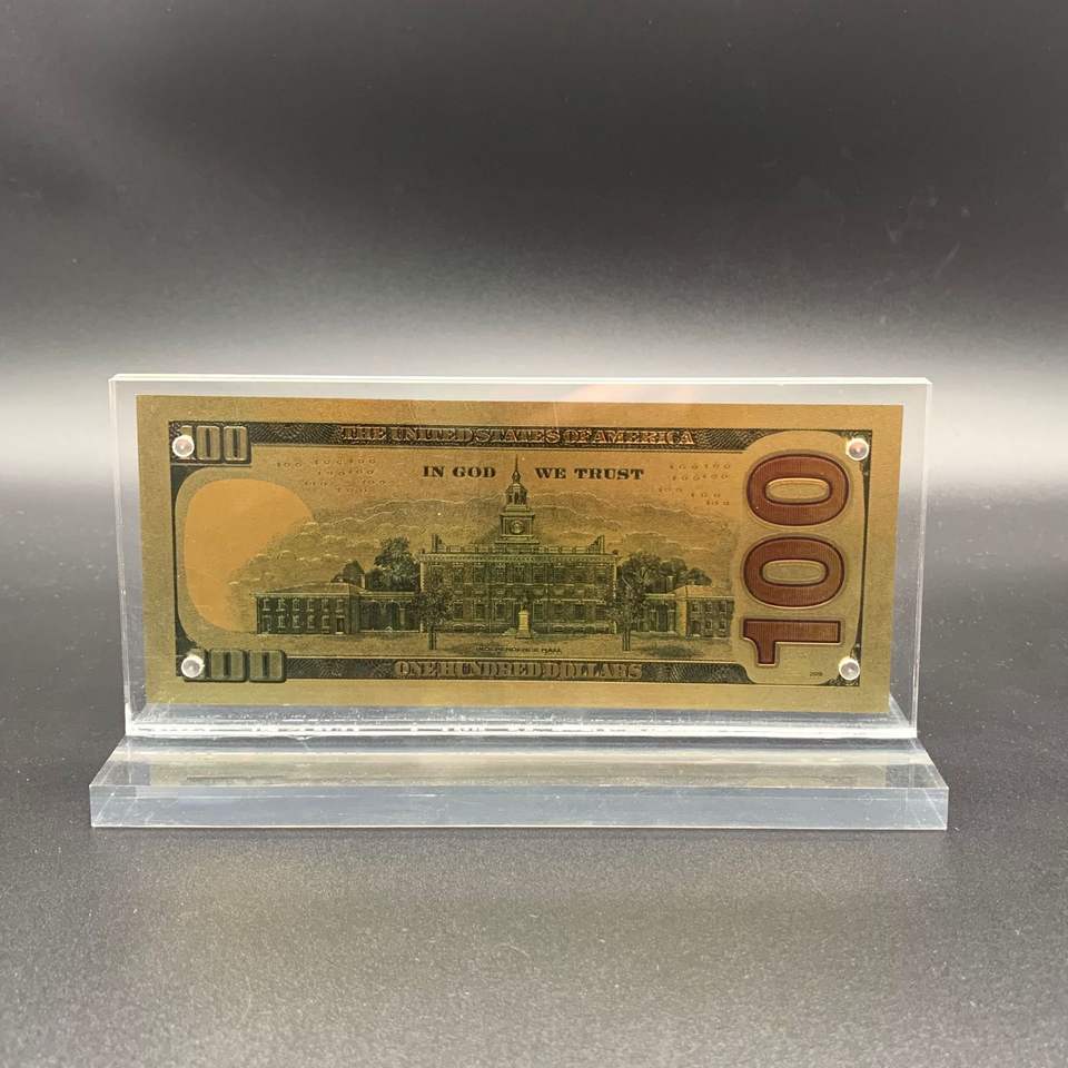 Support d'affichage de billets de banque en acrylique personnalisé en usine avec feuille d'or en forme de T pour billets de banque en dollars américains, souvenir, cadeau, affichage