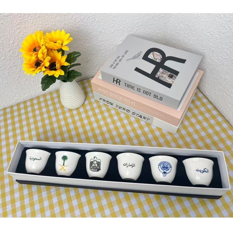 Tasse à thé arabe personnalisée en usine, logo OEM en relief, tasse à expresso, mug en céramique, bord doré, sans anse