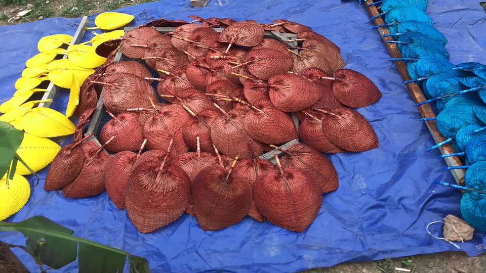 Éventails à main en feuille de palmier en bambou personnalisés en usine Éventail à main en bambou pour décoration d'intérieur prêt à être expédié à bas prix