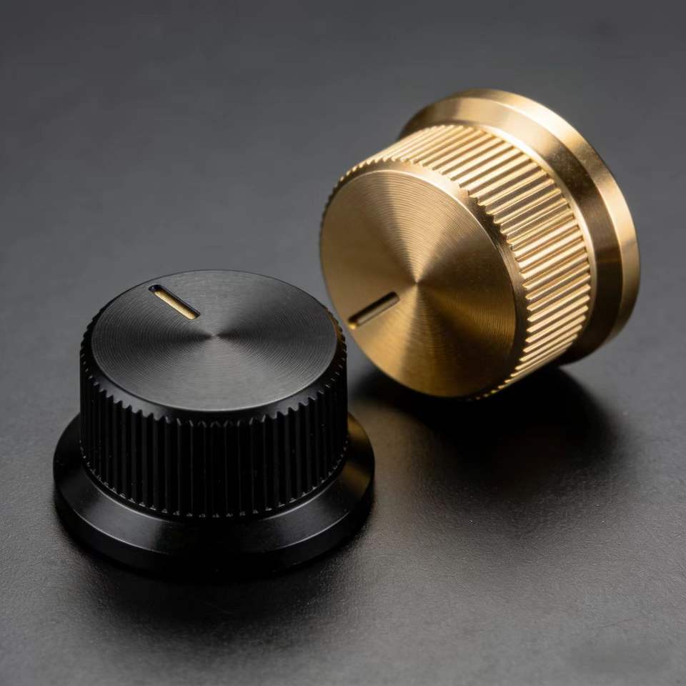 Fabrication sur mesure par usinage CNC et brochage pour le traitement par électro-érosion à fil de boutons de commande en laiton et acier inoxydable pour amplificateurs et contrôle du volume