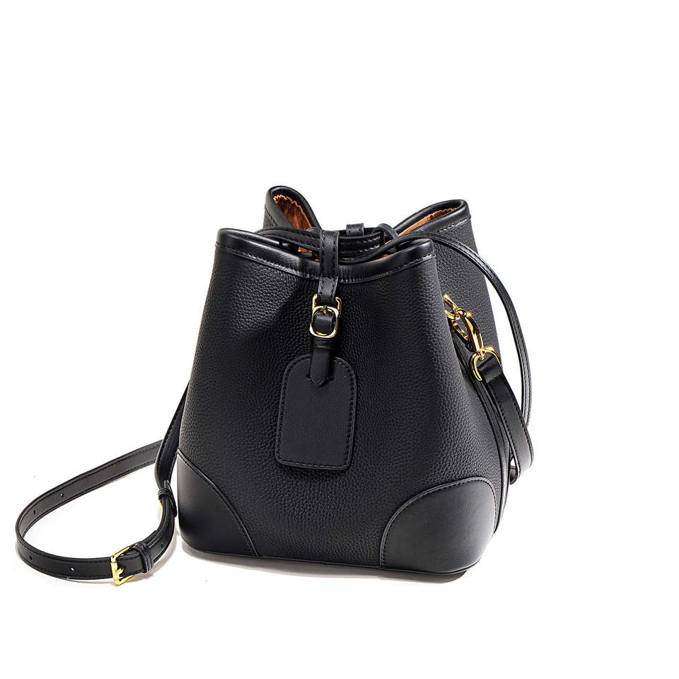 Sac seau tendance en cuir de vachette pleine fleur personnalisé en usine, avec fermeture à cordon, sac à bandoulière portable pour femme