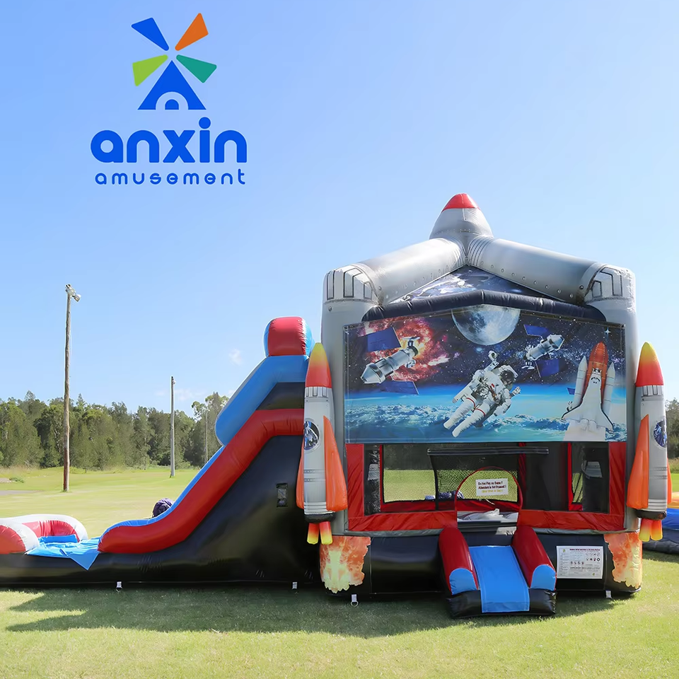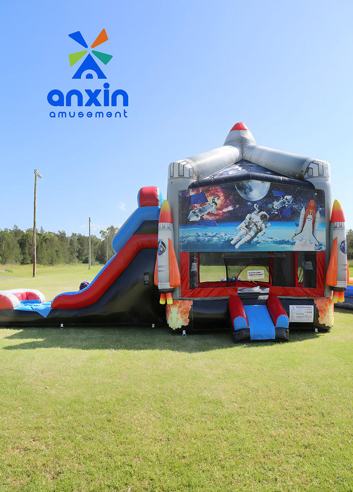 Château rebondissant intérieur et extérieur personnalisé en usine combinaison de toboggan de trampoline gonflable commercial à vendre série spatiale