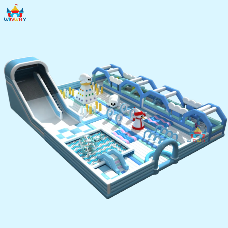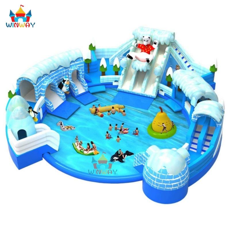 Parc aquatique gonflable sur le thème de l'ours polaire, fabriqué sur mesure, avec toboggan géant et piscine