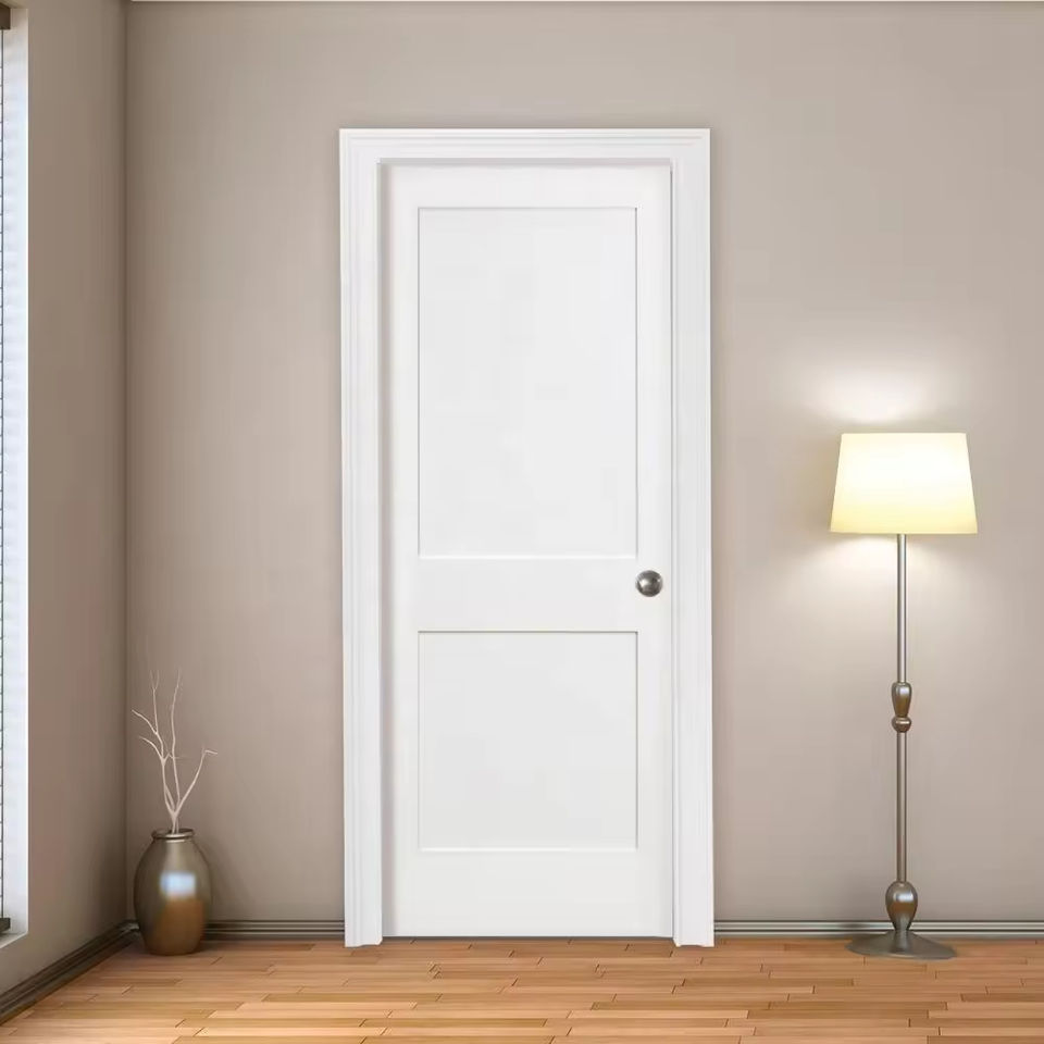 Portes en bois de chambre maison moderne personnalisées en usine PUertas De Madera PVC MDF porte en bois à bas prix avec filet d'écran en fibre de verre