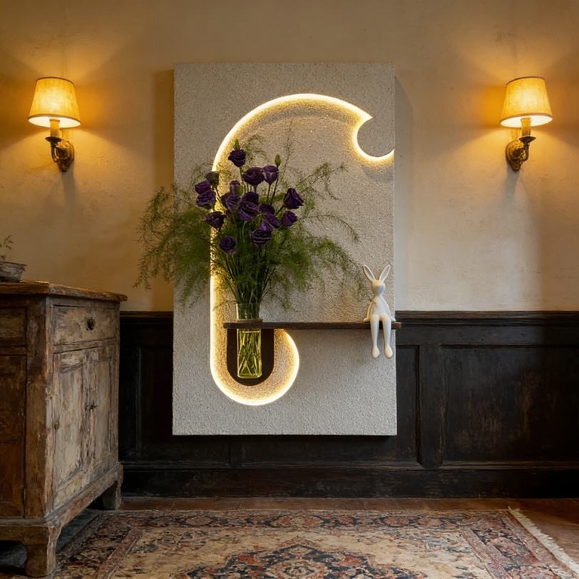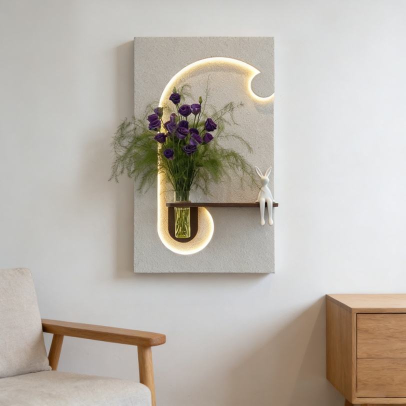 Peinture personnalisée en usine, art de la pierre sablée 3D de luxe, décoration intérieure, peinture avec plantes hydroponiques, peinture décorative LED lumineuse, art mural suspendu