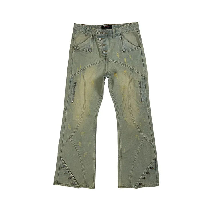 Jeans en toile pour hommes, logo personnalisé en usine, prix de gros, style hip-hop, jambe large, streetwear, ample, style urbain, respirant