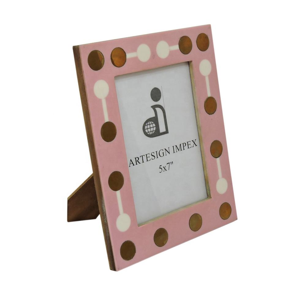 Cadre photo en résine personnalisé en usine avec incrustation de laiton Creative Mint & Gold Design rectangulaire écologique pour la maison et le bureau
