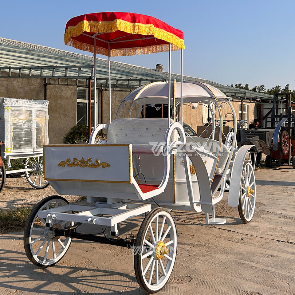 Personnalisé en usine Royal Citrouille Mariage Tourisme Voitures 4 Roues Électrique Cendrillon Chariot avec Auvent