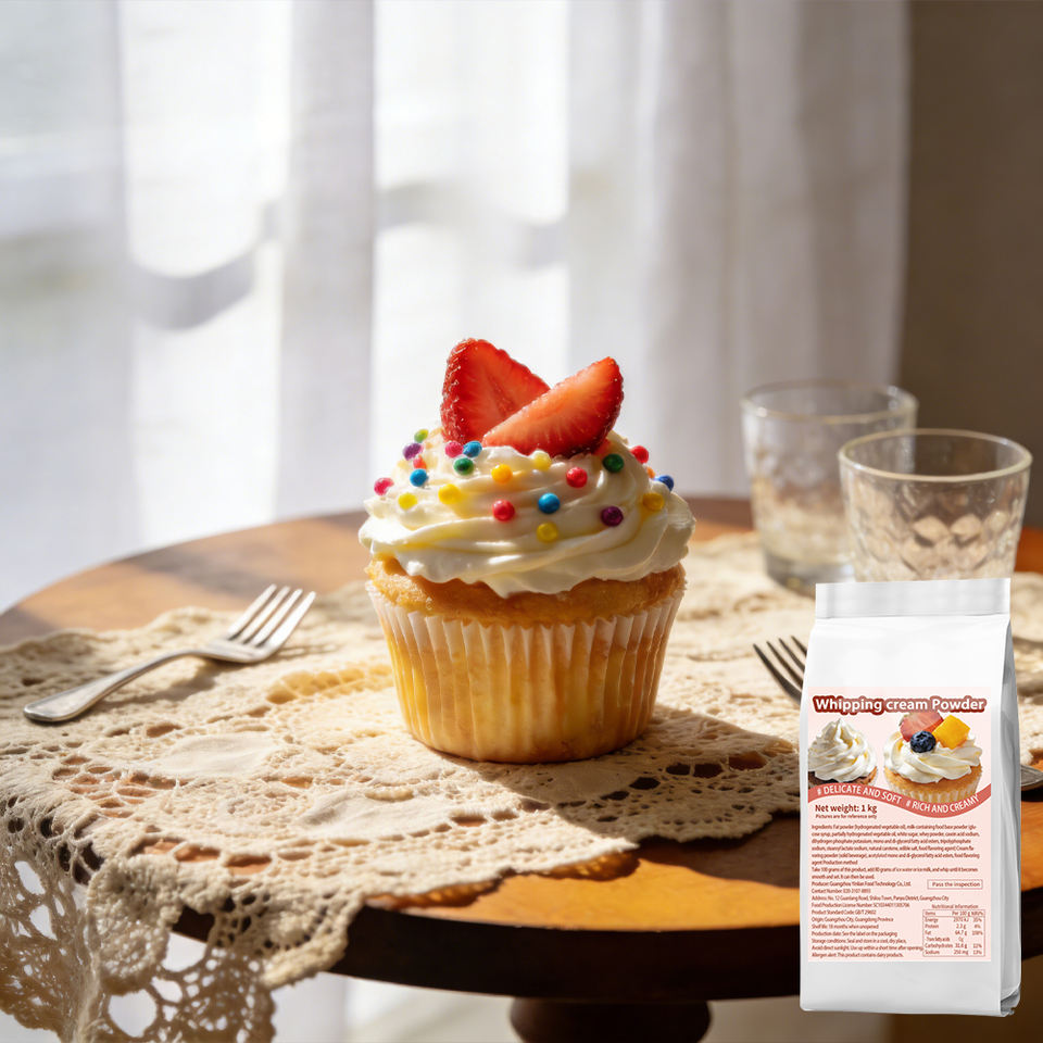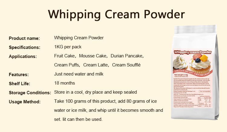 Poudre de crème fouettée à l'apparence blanche, riche en texture, parfumée et soyeuse, personnalisée en usine, avec certification Halal
