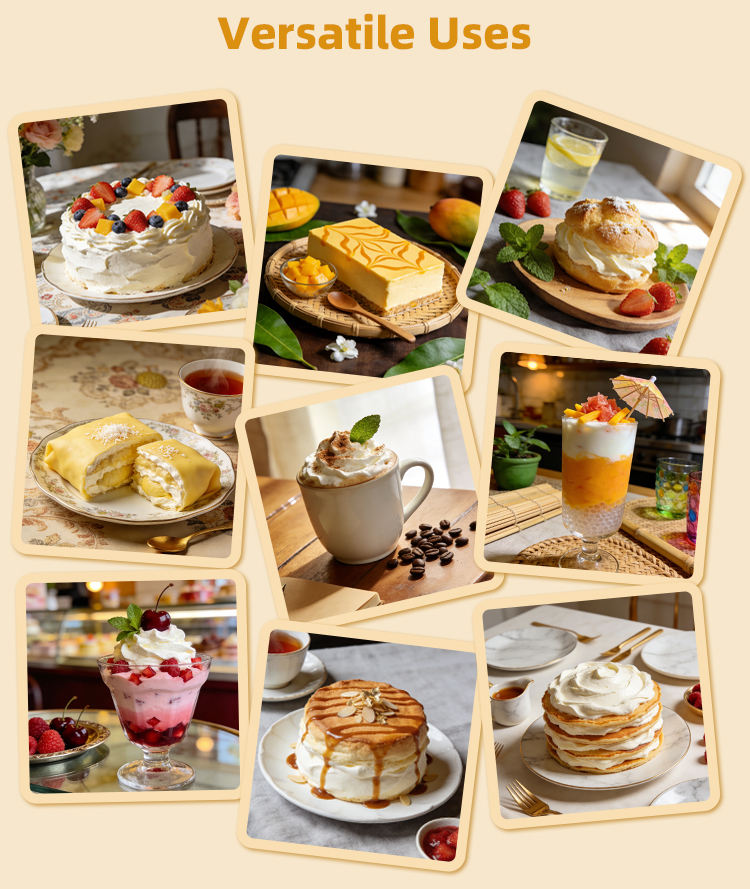 Application:Gâteau, crêpe, choux, pain, glace, biscuits, etc.