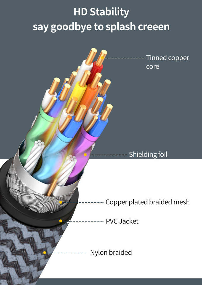 Câble de données tressé noir 4K 2.0 version 60Hz personnalisé en usine, avec âme en cuivre sans oxygène, pour appareil photo et ordinateur